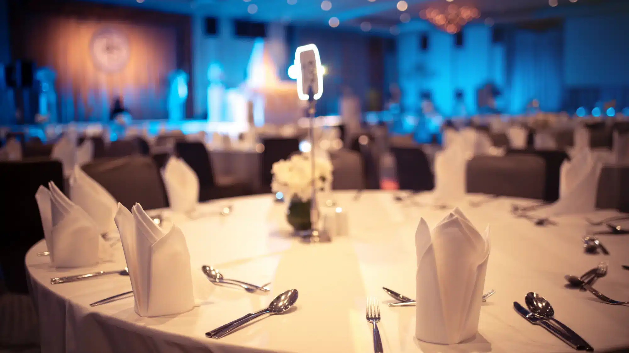 - A/V, decor, and entertainment: Projection equipment, stage lighting, floral decor, and live entertainment can add to the total.